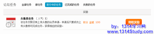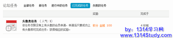 添加好了论坛任务后,将论坛任务设置为启动,在论坛的前台页面的顶部导航条中就会出现“论坛任务”的字样了,如下图所示: