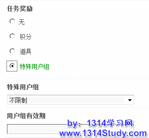 用户组限制:此处您可以设置哪些用户组的会员可以参与此项任务。