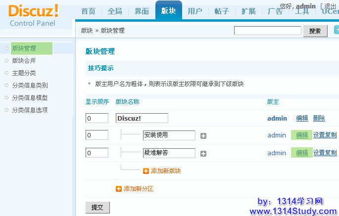 编辑版块界面,如下图所示: