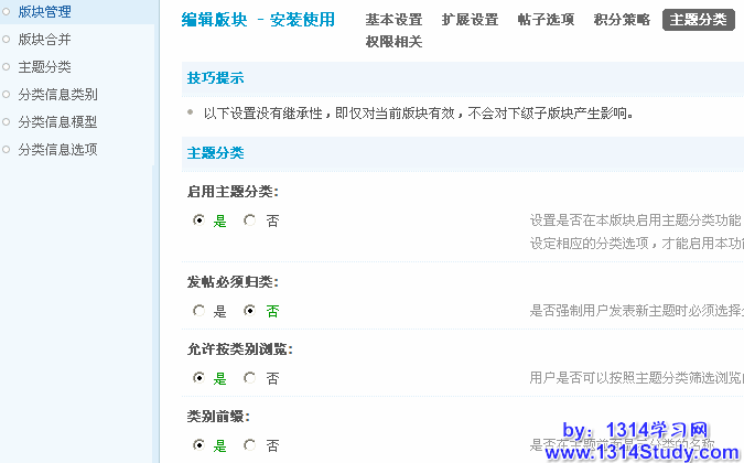 设置是否在本版块启用主题分类功能,您需要同时设定相应的分类选项,才能启用本功能。