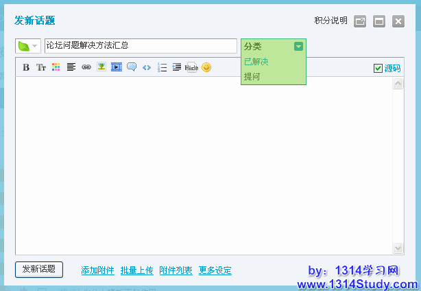 添加好主题分类后,我们就可以在开启了主题分类的相应版块发帖选择主题分类了,如下图所示: