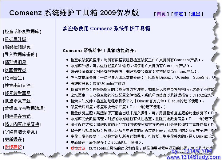 14、Discuz! 自增长字段修复 ,程序会自动检测论坛数据库自增长字段的情况,如果有错误会进行修复,暂时只支持 Discuz! 5.5.0 版本和 Discuz! 6.0.0 版本。