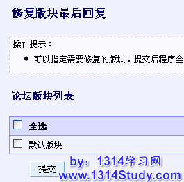 有的时候会碰到发帖机来论坛发大量的广告帖子,管理员在后台批量删除这些帖子后,数据库中有些冗余的数据没有清理掉导致版块的最后回复还是广告贴的信息,此时可以利用此功能修复。
