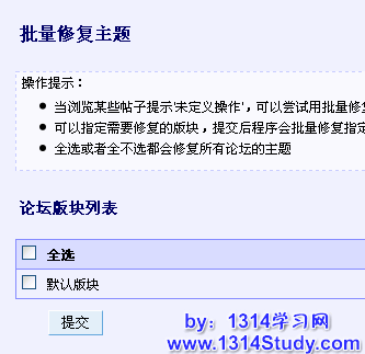 有的时候会碰到发帖机来论坛发大量的广告帖子,管理员在后台批量删除这些帖子后,数据库中有些冗余的数据没有清理掉导致帖子的最后回复还是广告贴的信息,此时可以利用此功能修复。