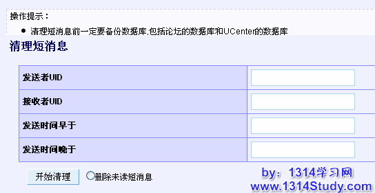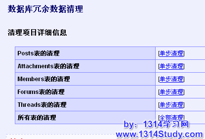 当论坛运行一定的时间后,由于日常的维护会导致一些冗余的数据存在数据库中,利用此功能可以清理掉冗余的数据,提高论坛的运行速度。注意:使用此功能前要备份数据库。