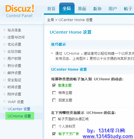 Discuz! 7.0.0 => 全局 => UCHome 设置
