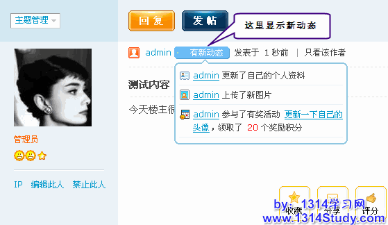 帖子页面的头像区域:即在头像区域显示某一个会员在 UCHome 的个人动态。