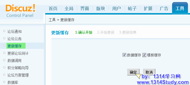 2、使用管理员身份登录论坛,进入后台 => 工具 => 更新缓存。