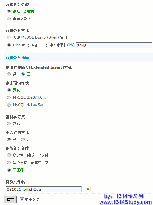 如果要对备份数据再做其他要求可以点击上图中的“更多选项”根据需要进行选择:
