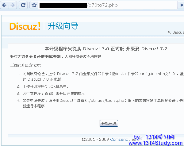 5、在浏览器中运行 http://www.domain.com/d70to72.php 升级程序进行升级(其中 http://www.domain.com 为你的论坛访问地址)