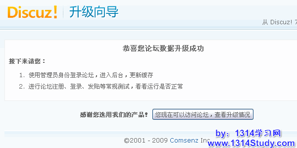 至此, Discuz! 7.1 到 Discuz! 7.2 升级成功!