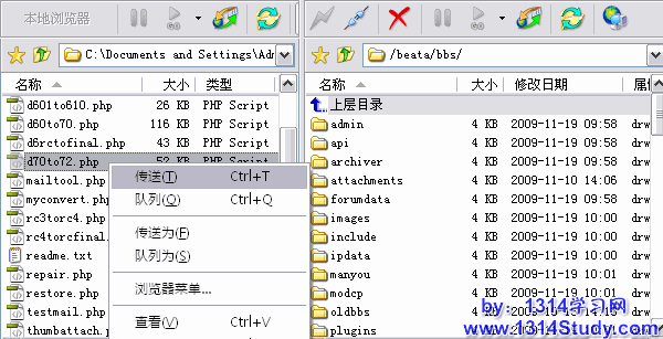 1、首先把 FTP 目录下除了 attachments 和 config.inc.php 文件以外,把其它所有文件和目录全部移动到一个新建的 oldbbs 目录中
