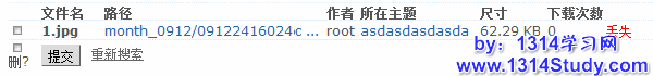 附件的管理,主要包括附件的删除、下载、查看附件所在主题。当按查询条件提交以后,会看到类似下图所示的搜索结果:
