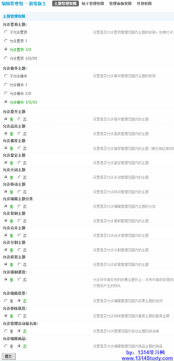 2)允许精华主题:设置是否允许精华管理范围内主题的级别。