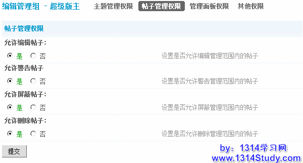 1)允许编辑帖子:设置是否允许编辑管理范围内的帖子。