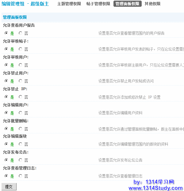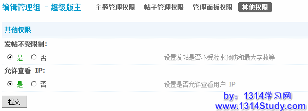 该设置可以设置论坛具备管理权限的用户组权限。