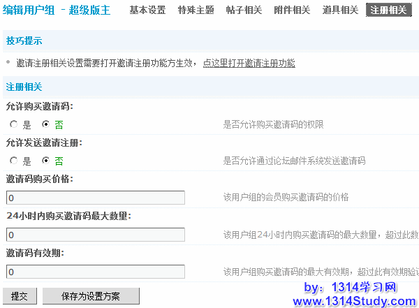 2)允许发送邀请注册:是否允许通过论坛邮件系统发送邀请码。