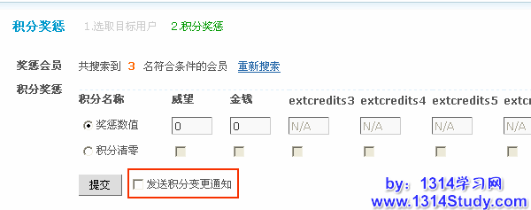 勾选“发送积分变更通知”,如图: