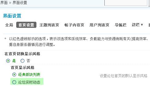 论坛动态的设置在系统设置 => 全局 => 论坛动态设置。论坛动态主要包含一下设置: