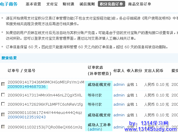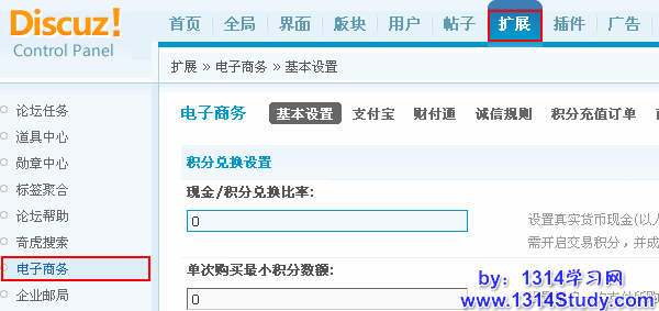 Discuz!7.2后台 => 扩展 => 电子商务: