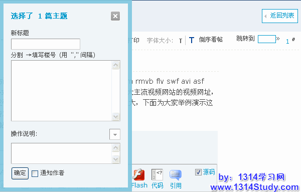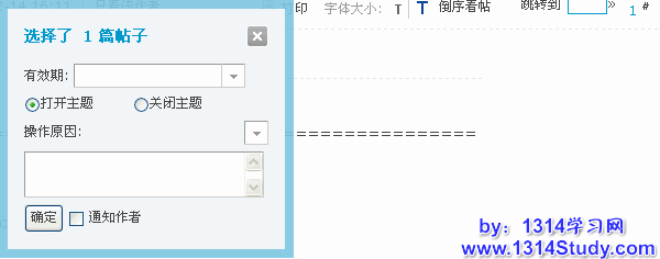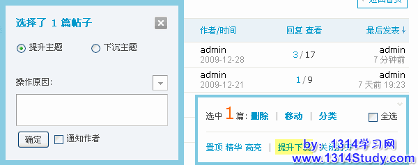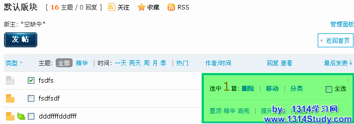 打开版块主题列表,勾选要管理的主题,将看到图示: