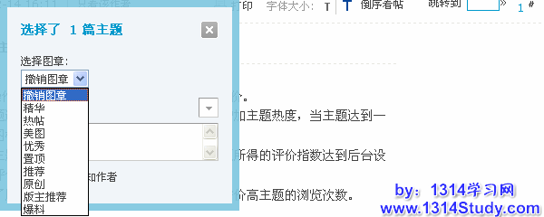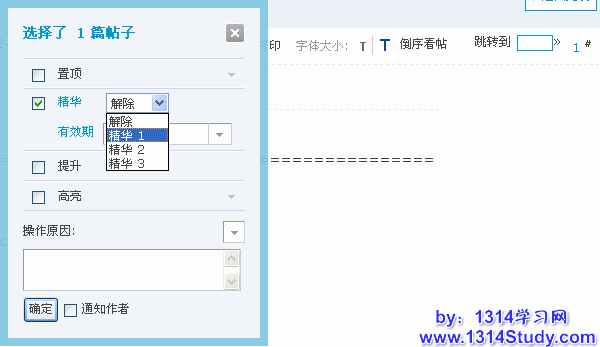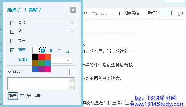 在置顶的同时,可以对选择的主题进行精华、高亮和提升等操作。