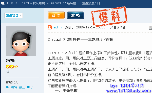 可以根据主题内容给予该主题鉴定图章,比如:精华帖,优秀帖,爆料贴等。使得会员对该主题有一目了然的了解。