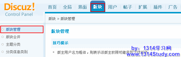 站长可以在管理后台管理论坛版块,包括添加新分区、添加新版块、添加子版块、为版块添加版主、设置版块显示顺序及编辑、删除版块等。