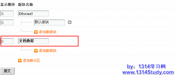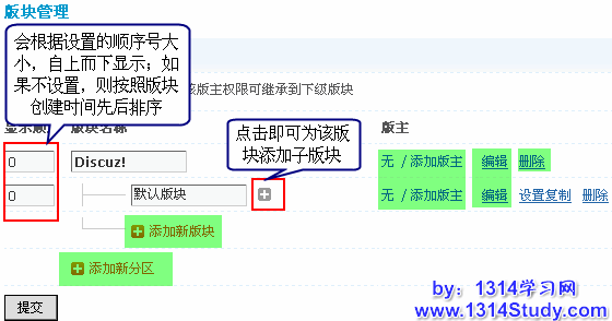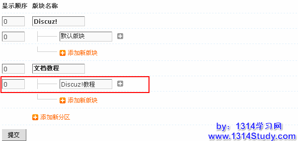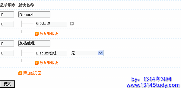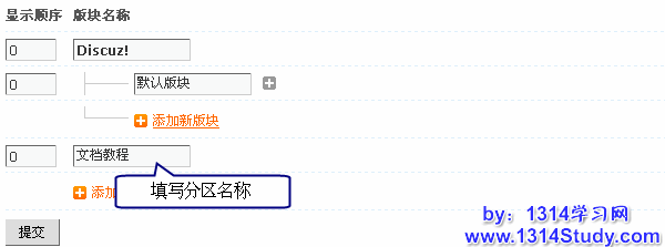 说明:当分区下有版块时,才可以在前台正常显示,否则分区无法在前台显示。