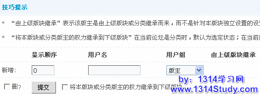 将本版块或分类版主的权力继承到下级版块:如果勾选,那么该版块版主也可以管理该板块的下级版块;