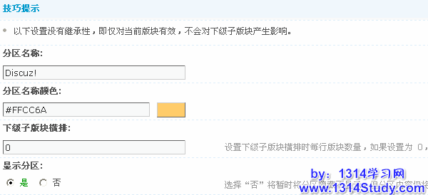 下级子版块横排:设置下级子版块横排时每行版块数量,如果设置为 0,则按正常方式排列;