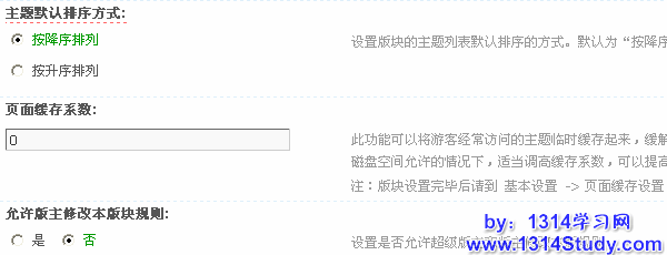 主题默认排序方式:设置版块的主题列表默认排序的方式。默认为“按降序排列”,除默认设置外其他排序方式会加重服务器负担;