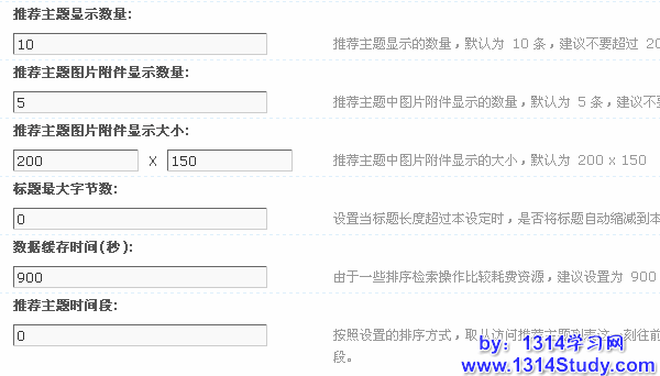 推荐主题图片附件显示数量:推荐主题中图片附件显示的数量,默认为 5 条,建议不要超过 10 条;