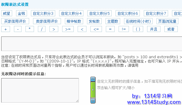 权限表达式设置:当设定了权限表达式后,只有符合此表达式的会员才可以浏览本版块;