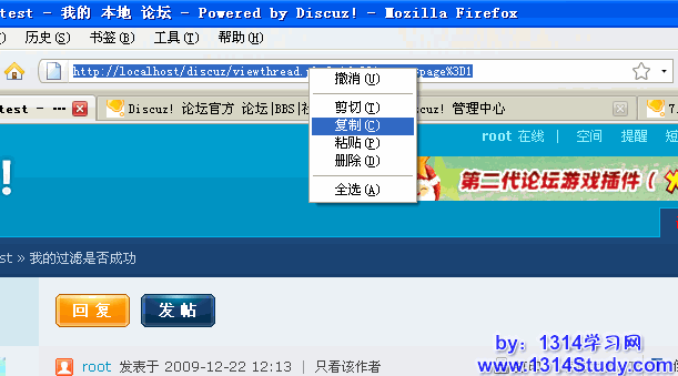 2、到前台单击主题帖子,把主题帖子地址粘贴到
