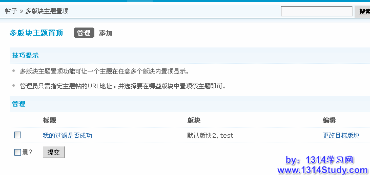 勾选主题前面的框,点击提交就会把相应的添加的置顶的主题删除