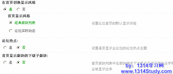 论坛热点:选择“是”,将在首页显示全论坛的热点主题,并可设置论坛热点的显示数量、热点天数、更新周期及了论坛热点内容截取文字长度;