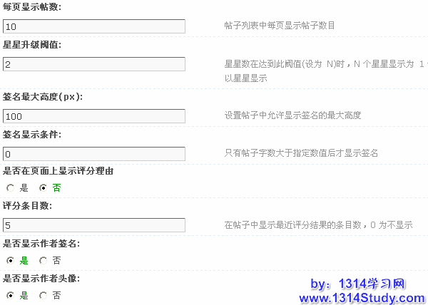 每页显示贴数:设置帖子内容页,每页显示多少楼帖子;