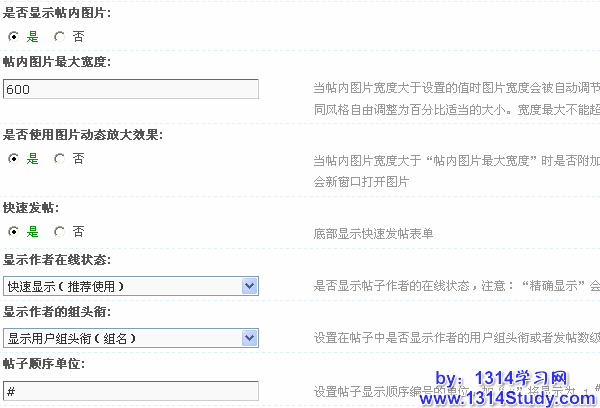 显示作者在线状态:是否显示帖子作者的在线状态,注意:“精确显示”会轻微加重服务器负担;