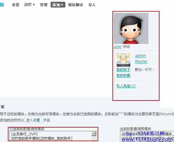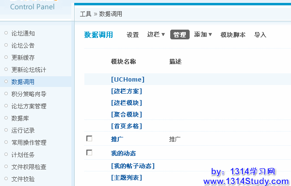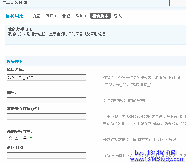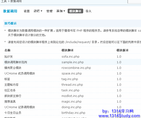 论坛的数据调用,不仅可以对于基本论坛数据的调用,也可以进行脚本模块的调用,可以通过把创建好的各种调用聚合在一个新的模块或是边栏中进行聚合的调用显示。
