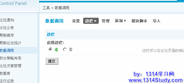 在这里设置论坛全局是否启用边栏,选择“是”启用边栏,“否”关闭边栏。
