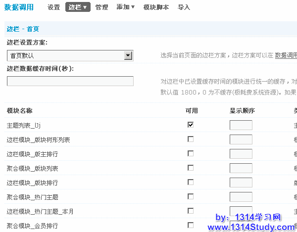 边栏数据缓存时间(秒):由于一些排序检索操作比较耗费资源,数据调用程序采用缓存技术来实现数据的定期更新,默认值 1800,0 为不缓存(极耗费系统资源)。如果留空则使用基本设置的值。