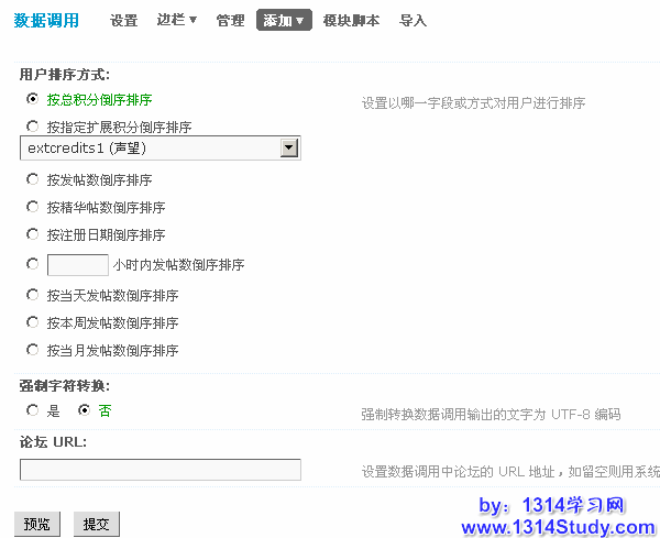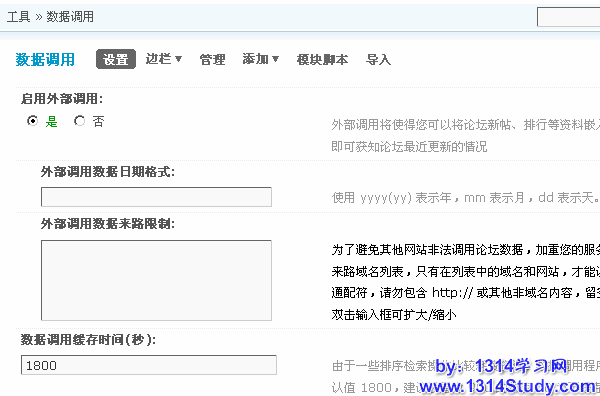 论坛 URL:设置数据调用中论坛的 URL 地址,如留空则用系统默认值