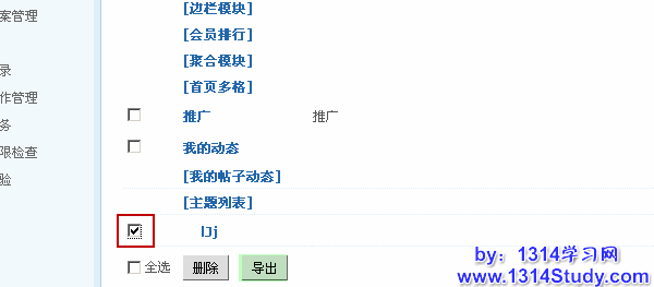 点击导航栏中的“管理”,勾选模块前的复选框,点击最下面的“导出”,会提示下载,然后保存即可。如下图所示: