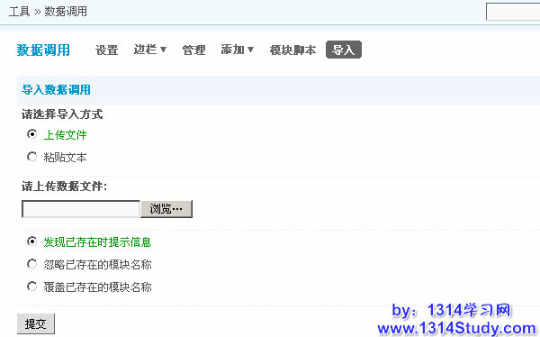 这里可以使用上传 XML 文件的方式导入或者是粘贴 XML 文件的方式导入。另外还有接种导入方式:
