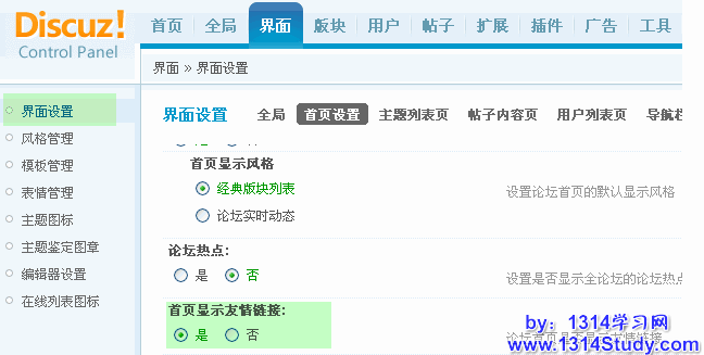 登录 Discuz! 7.2 => 系统设置 => 广告 => 友情链接: