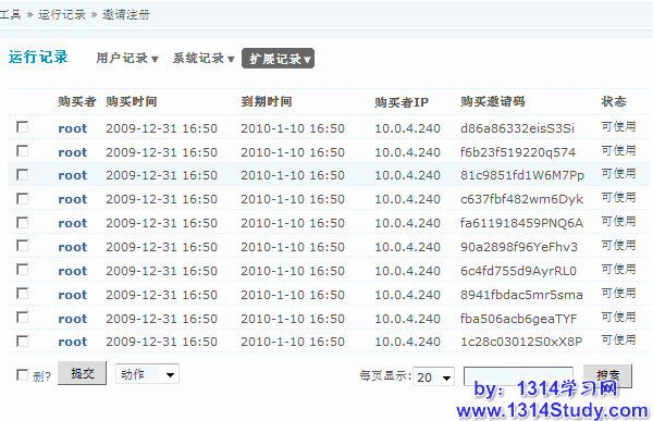邀请注册记录着邀请注册的所有使用情况。所有使用邀请注册的情况都一目了然。可以通过页面右下角的搜索您需要的邀请注册信息。