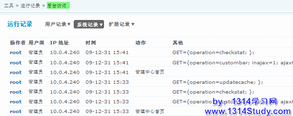 想让论坛能健康稳定的运行,就要经常对论坛的运行情况进行监控。运行记录提供了记录论坛各个运行状态的功能。当遇到一些故障的时候,不妨来看看运行记录。