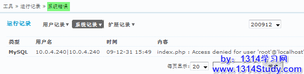 系统错误记录着论坛在运行状态中,出现的MySQL的错误,发邮件错误,ftp远程附件上传错误。这个记录可以帮助我们了解论坛的运行情况。以通过页面右下角的搜索您需要的系统错误信息。