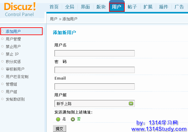 Discuz!7.2后台 => 用户 => 添加用户: